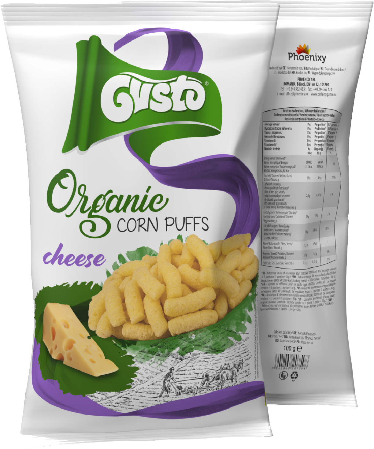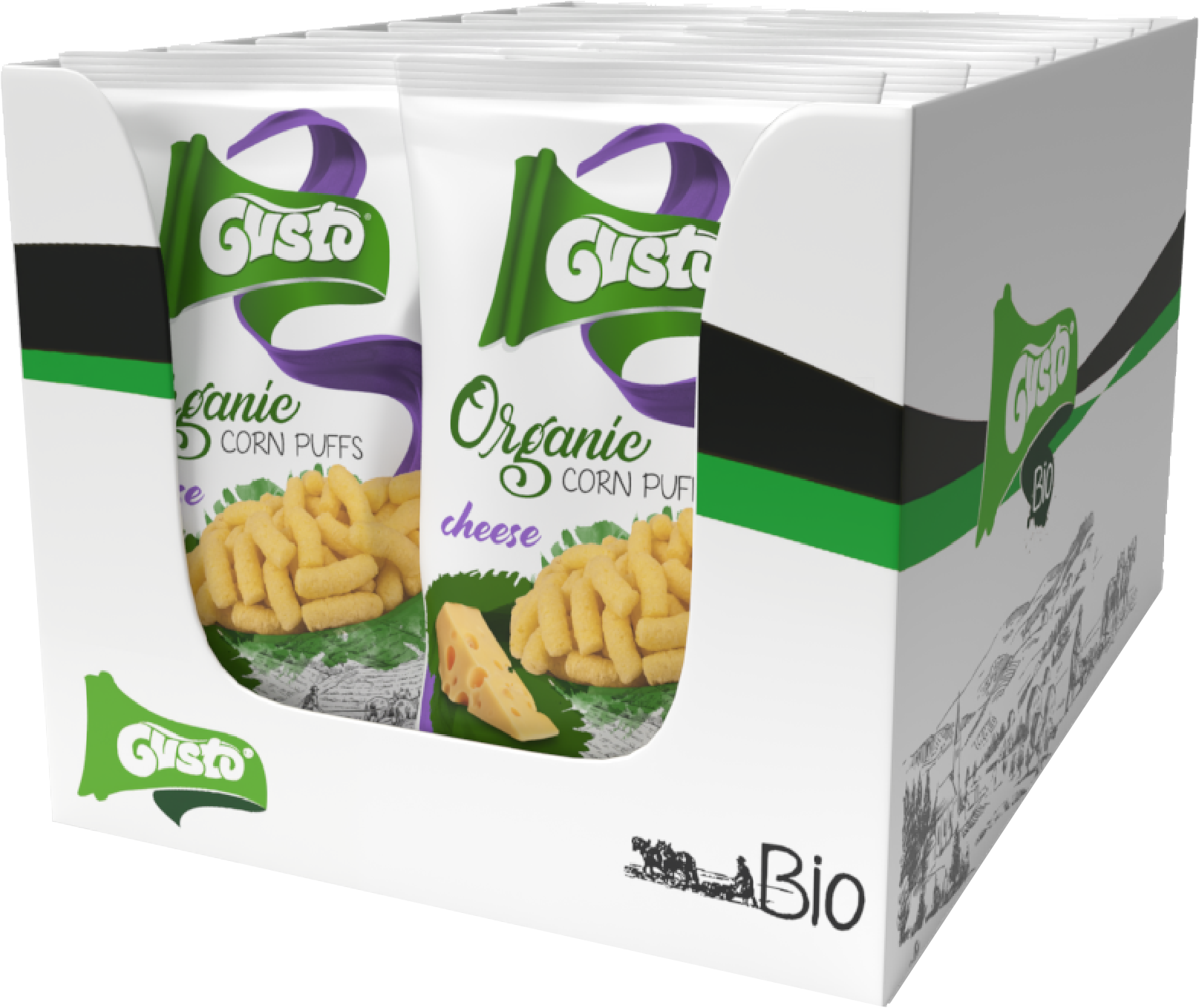 Delight in the savory taste of cheese with Gusto Organic Corn Puffs. Our commitment to quality shines through as we adhere to stringent criteria, ensuring a snack that is both flavorful and wholesome.
